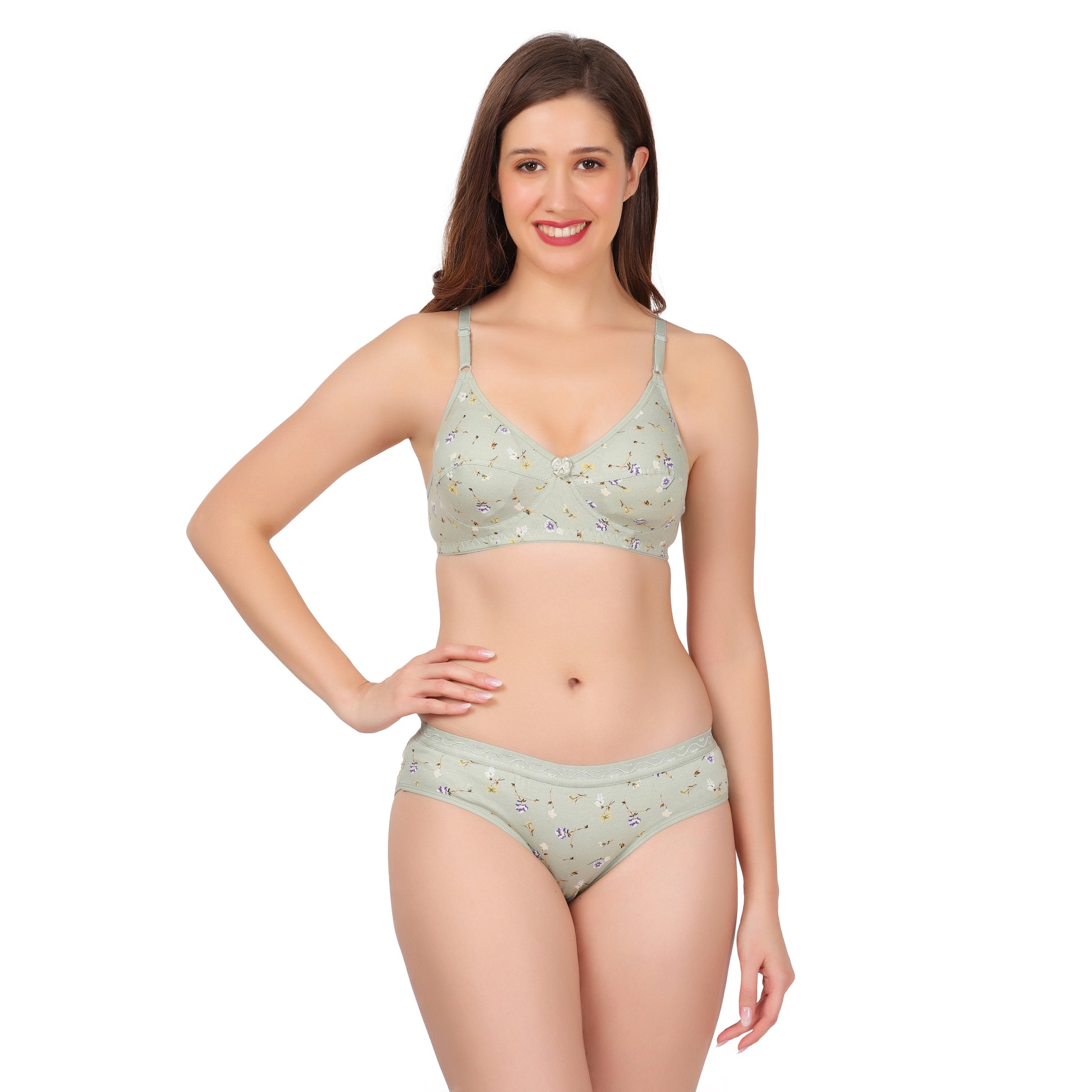 This flomi women full coverage cotton printed bra panty set is designed for comfort and support. Made with high-quality cotton, it offers a soft and breathable fit. The full coverage design provides maximum support and the printed pattern adds a touch of style. Perfect for everyday wear.